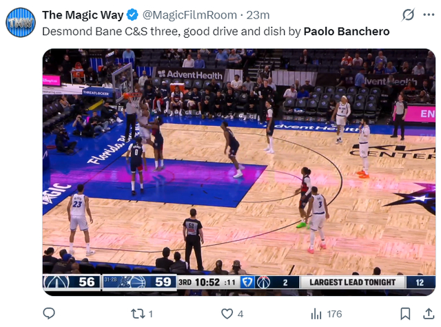 第三节班凯罗的个人进攻状态更出色,单节8中5拿到13分3篮板3助攻,三节仅仅登场28分钟就已经拿到30+的数据。