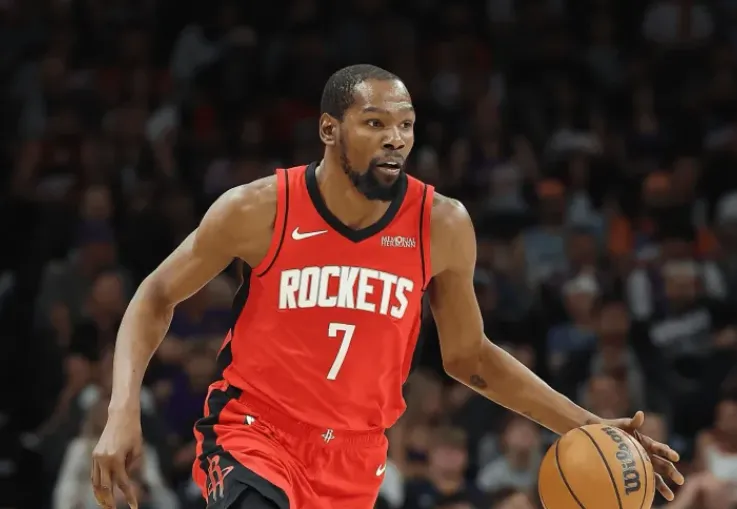 本场比赛,火箭队球员凯文-杜兰特出战35分钟,投篮20中8,三分球9中5,罚球3中3,得到24分4篮板3助攻。